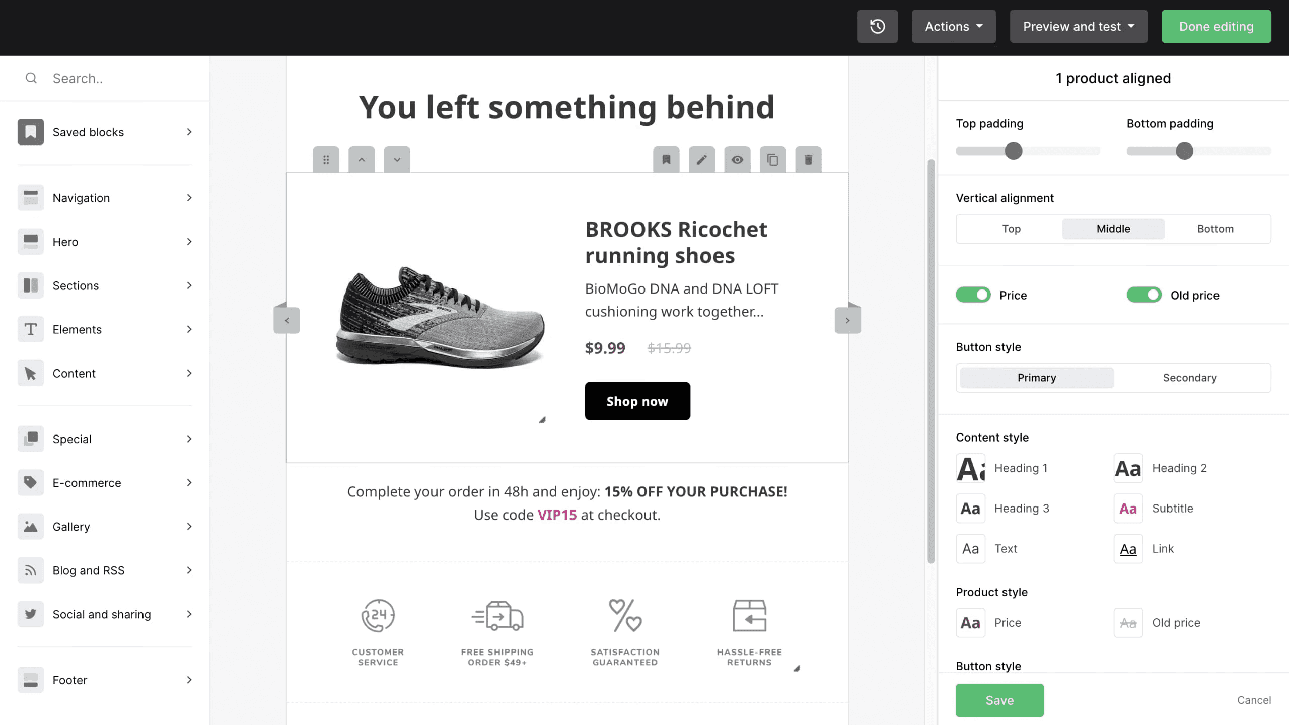 A minimalist drag-and-drop builder with smart content blocks (surveys, quizzes) lets you craft a polished email in minutes.