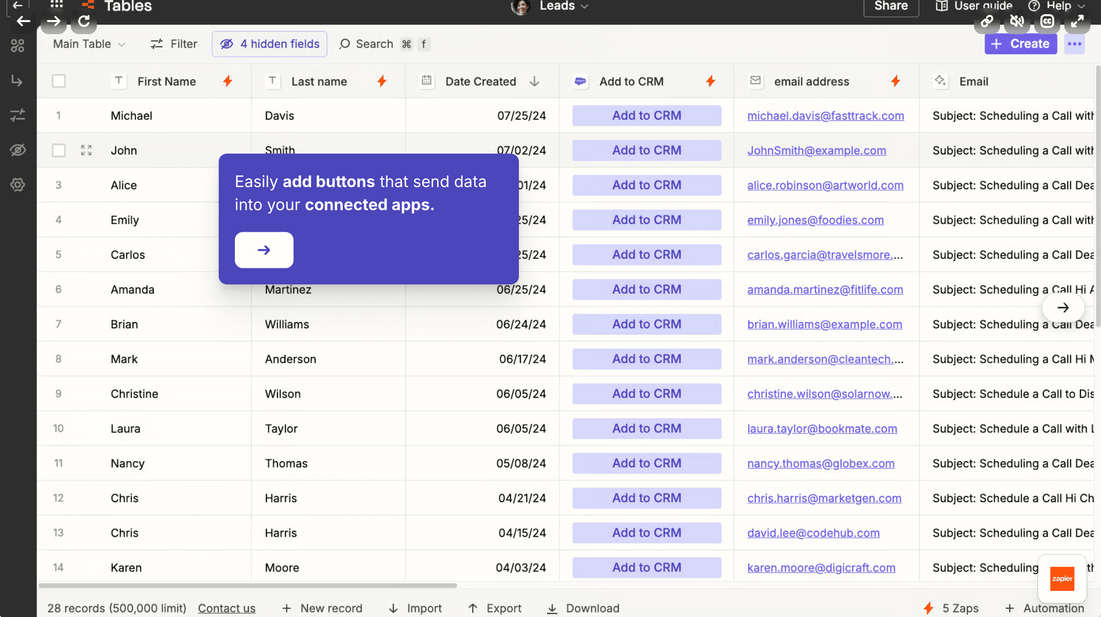 Buttons/forms trigger Zaps - great for deal‑desk or CS portals.